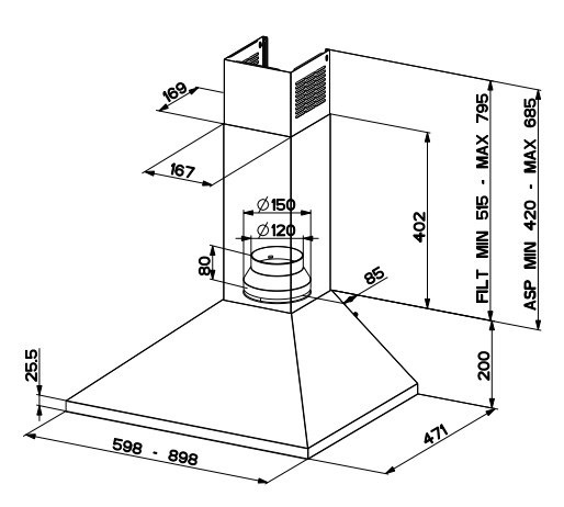 - Tipo: Cappa aspirante a parete