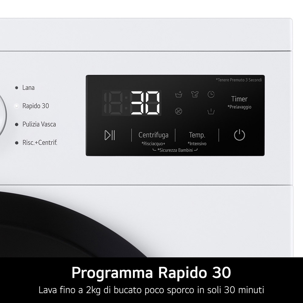 - Programmi di lavaggio: Cotone, Eco 40-60°C, Igiene/Allergy Care, Mix, Quick 30min, Risciacquo & centrifuga, Lana
